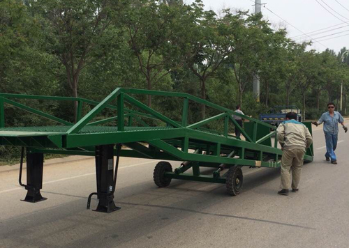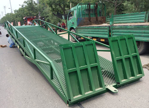 移動式液壓登車橋是叉車對貨車裝卸貨時,叉車從地面直接行駛至車廂的專用設備,它可以隨時轉移裝卸作業場地,實現貨物的快速裝卸。利用叉車牽引或推行,可以將移動式液壓登車橋輕松轉移到作業位置就位,叉車可自如地通過登車橋,行駛于貨車與地面之間,實現快速、安全地裝卸貨。