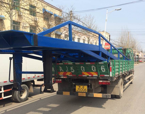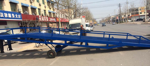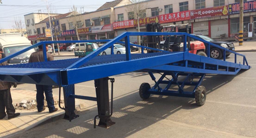 移動式液壓登車橋是叉車對貨車裝卸貨時,叉車從地面直接行駛至車廂的專用設備,它可以隨時轉移裝卸作業場地,實現貨物的快速裝卸。利用叉車牽引或推行,可以將移動式液壓登車橋輕松轉移到作業位置就位,叉車可自如地通過登車橋,行駛于貨車與地面之間,實現快速、安全地裝卸貨。