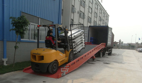 移動式液壓登車橋是叉車對貨車裝卸貨時,叉車從地面直接行駛至車廂的專用設備,它可以隨時轉移裝卸作業場地,實現貨物的快速裝卸。利用叉車牽引或推行,可以將移動式液壓登車橋輕松轉移到作業位置就位,叉車可自如地通過登車橋,行駛于貨車與地面之間,實現快速、安全地裝卸貨。